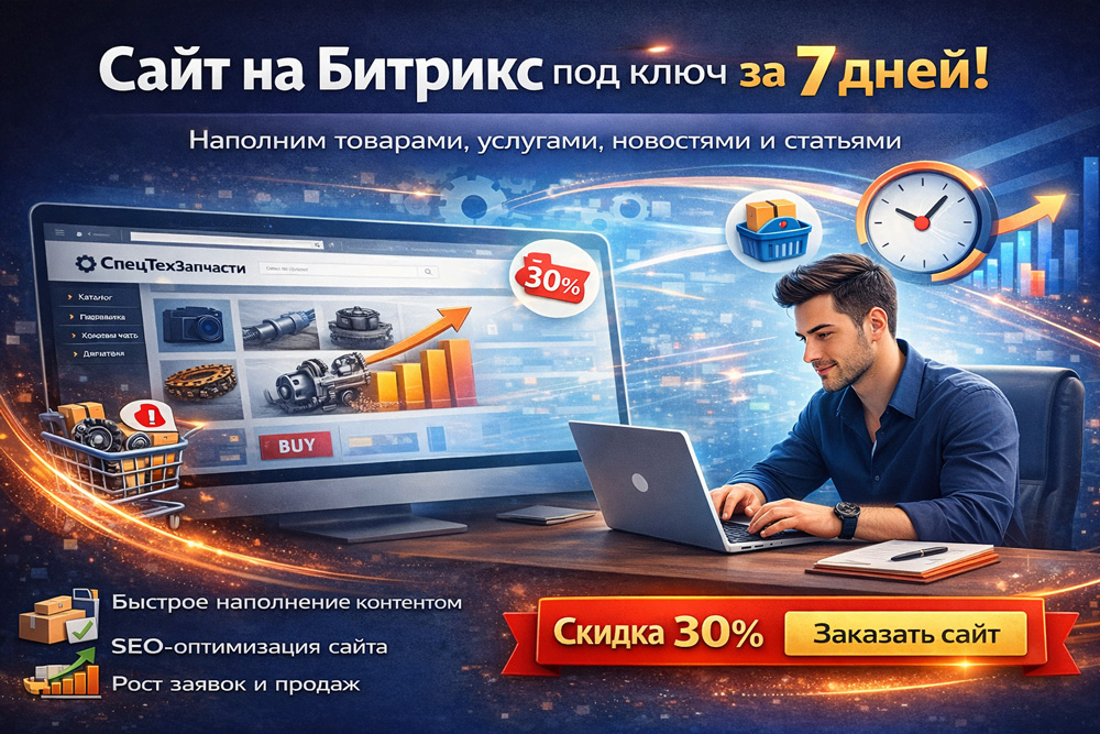 Закажите сайт и получите 30% скидку на наполнение (в т.ч. на установку и настройку сайта, парсинг и публикацию товаров и т.п.).